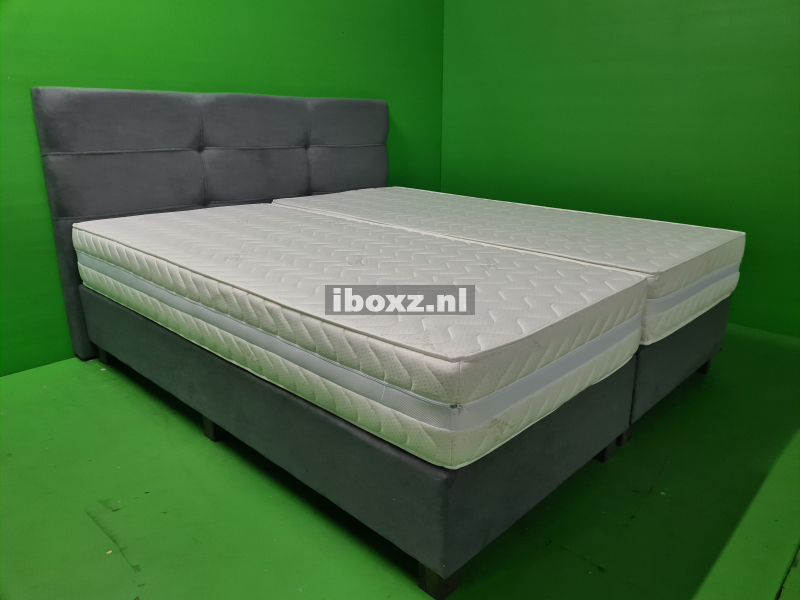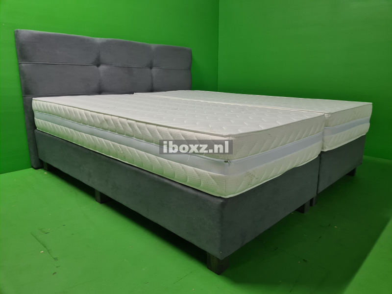 180 x 200 / 2 x box 90 x 200 + 2 x matras 90 x 200 en gecapitonneerd hoofbord Nu € 889,-