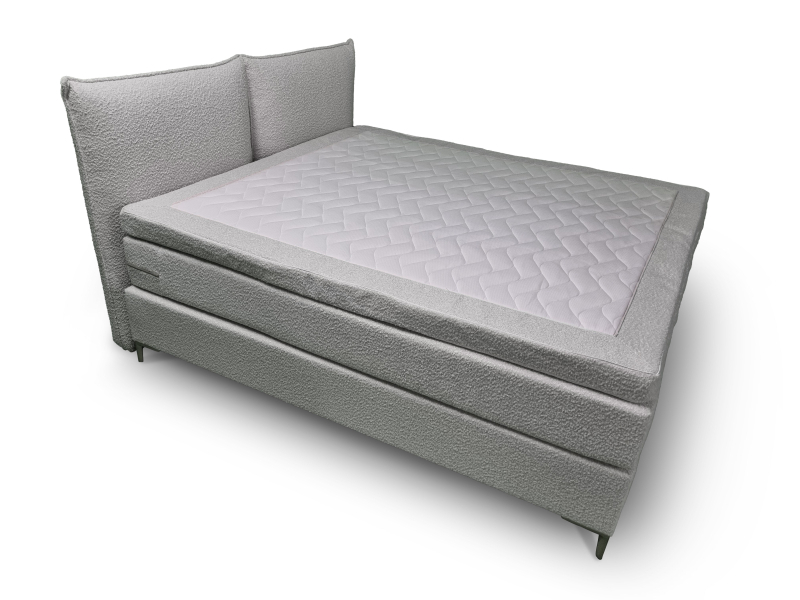 Hierop gecombineerd liggen 2 hoogwaardige pocket geveerde matrassen, die gespiegeld in dezelfde kleur als de boxsprings worden gestoffeerd.