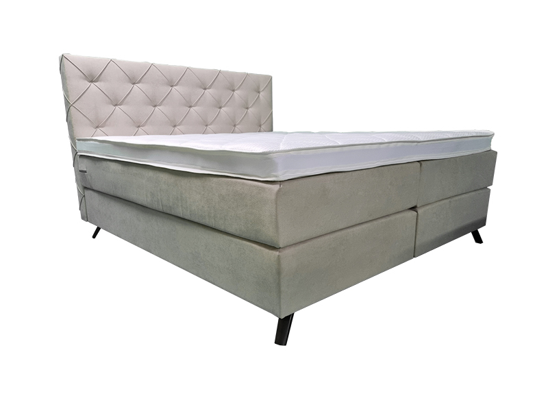 Hierop gecombineerd liggen 2 hoogwaardige pocket geveerde matrassen, die gespiegeld in dezelfde kleur als de boxsprings worden gestoffeerd.