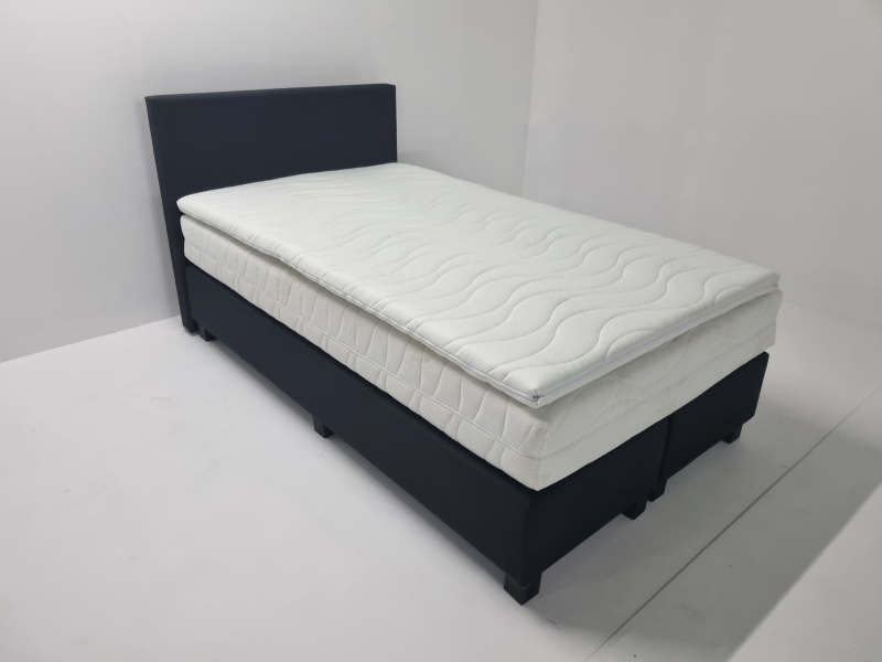 # 120 x 210 / 2 x strak gestoffeerde bonell geveerde box 60 x 210 + 1 x een 22 cm. dikke 7-zone pocketveermatras + koudschuim topper en Hoofdbord Van €1438,- Nu €. 789,-