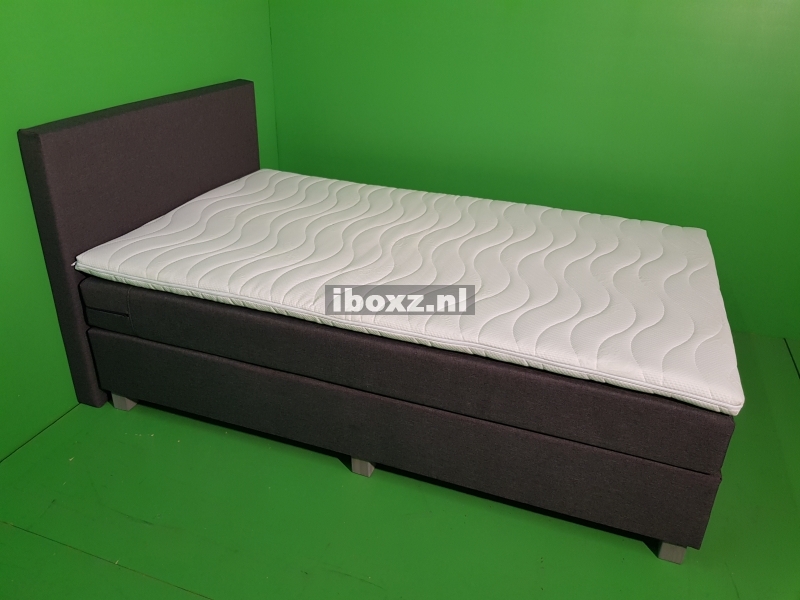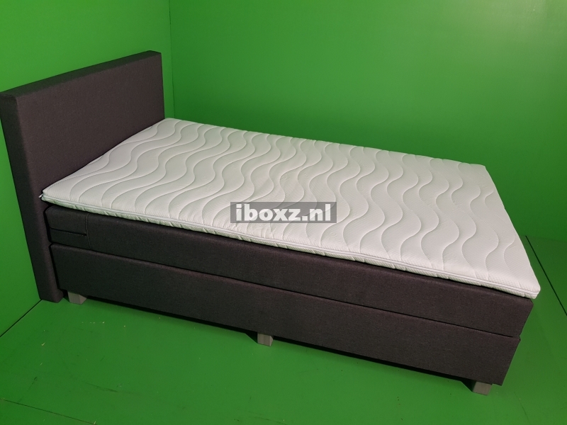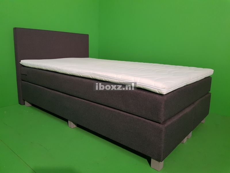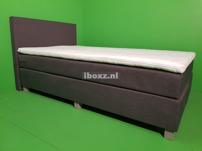 # 120 x 200 / Hoofdbord + 2 x strak gestoffeerde bonell geveerde box 60 x 200 + 1 x een in kleur meegestoffeerde 7-zone pocketveermatras en topper.